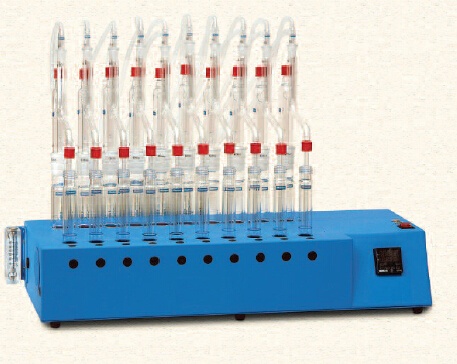 主要用于氨和苯酚的蒸馏提取,可同时处理10个样品。LCD显示屏,配备可调数控装置和计时器。此套系统配备内置式流量计,用以监测冷却水流量。玻璃器皿带有全套的管线和接头,实现冷却水管的连接。